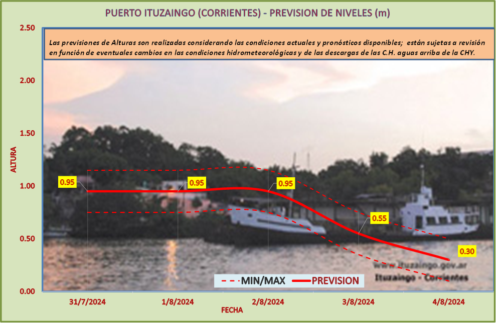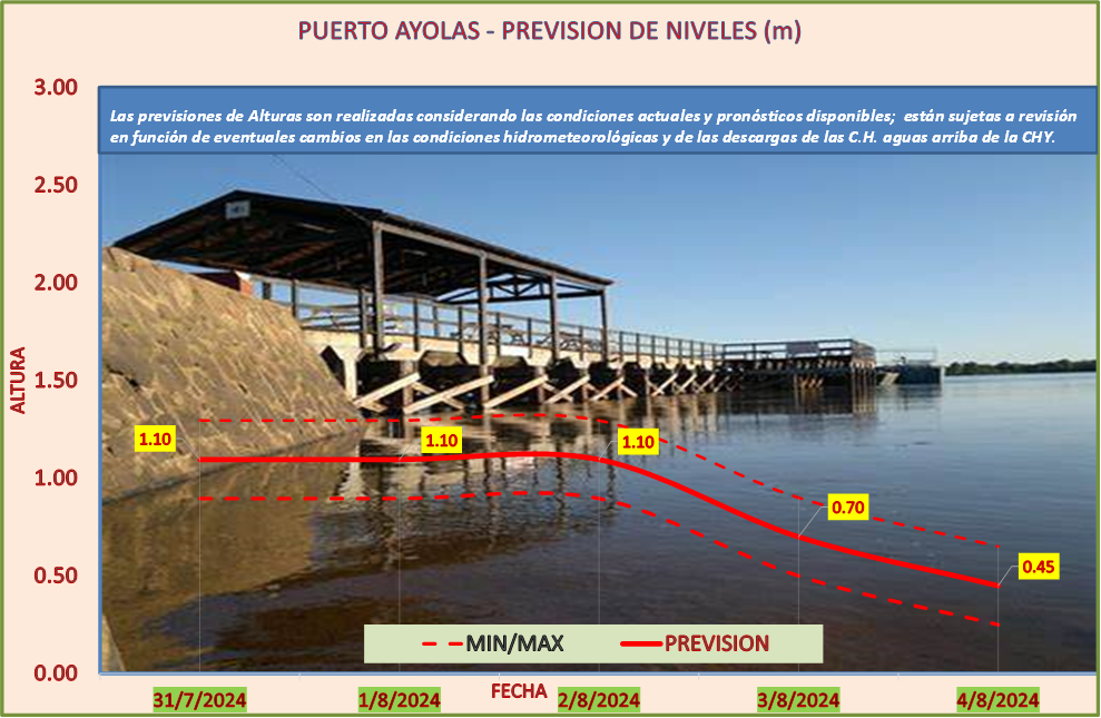 Las previsiones de Alturas son realizadas considerando las condiciones actuales y pronósticos disponibles y están sujetas a revisión en función de eventuales cambios en las condiciones hidrometeorológicas y de las descargas de las C.H. aguas arriba de la CHY.
