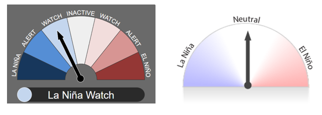 El fenómeno de El Niño-Oscilación del Sur (ENSO) es neutro, y tanto las temperaturas superficiales del mar (TSM) en el Océano Pacífico ecuatorial central como los patrones atmosféricos se encuentran en niveles neutros respecto de El Niño. Los índices atmosféricos, como los relacionados con los patrones de presión superficial, nubes y vientos alisios, son en general consistentes con un estado neutro respecto de El Niño. Aunque algunos han mostrado señales similares a las de La Niña durante las últimas semanas, estas señales no han sido consistentes.