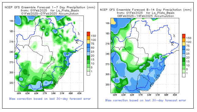 El pronóstico Hidrometeorológico del Centro Climático de referencia indica una tendencia semanal de poca significancia hidrológica en la cuenca de interés para la CHY con dispersión geográfica según sea la fuente consultada. (Ver gráfico Nro. 1).