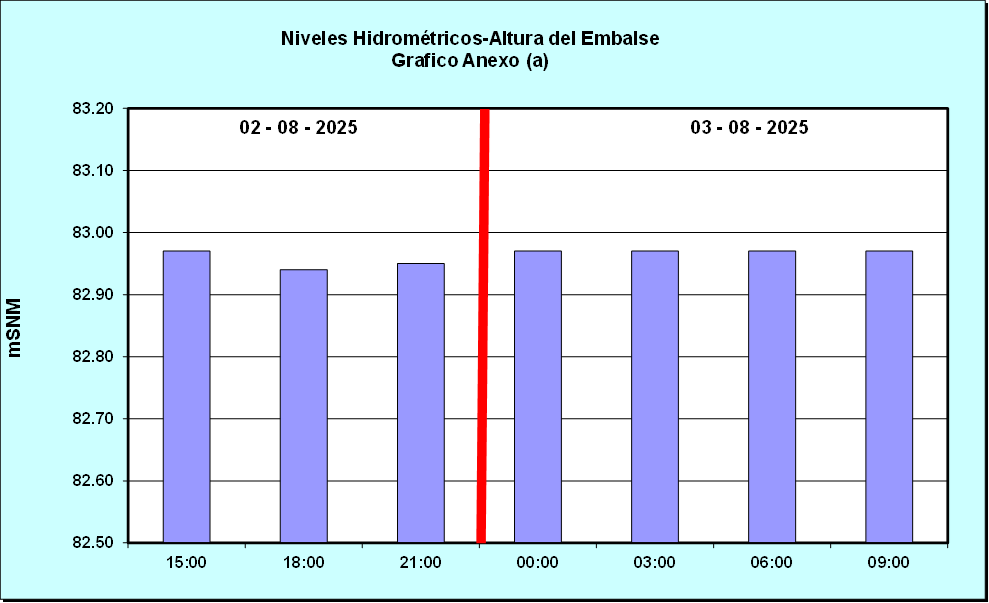 Nivel de Ayer (06:00 hs) = 82.96 mSNM Nivel de Hoy (06:00 hs) = 82.96 mSNM