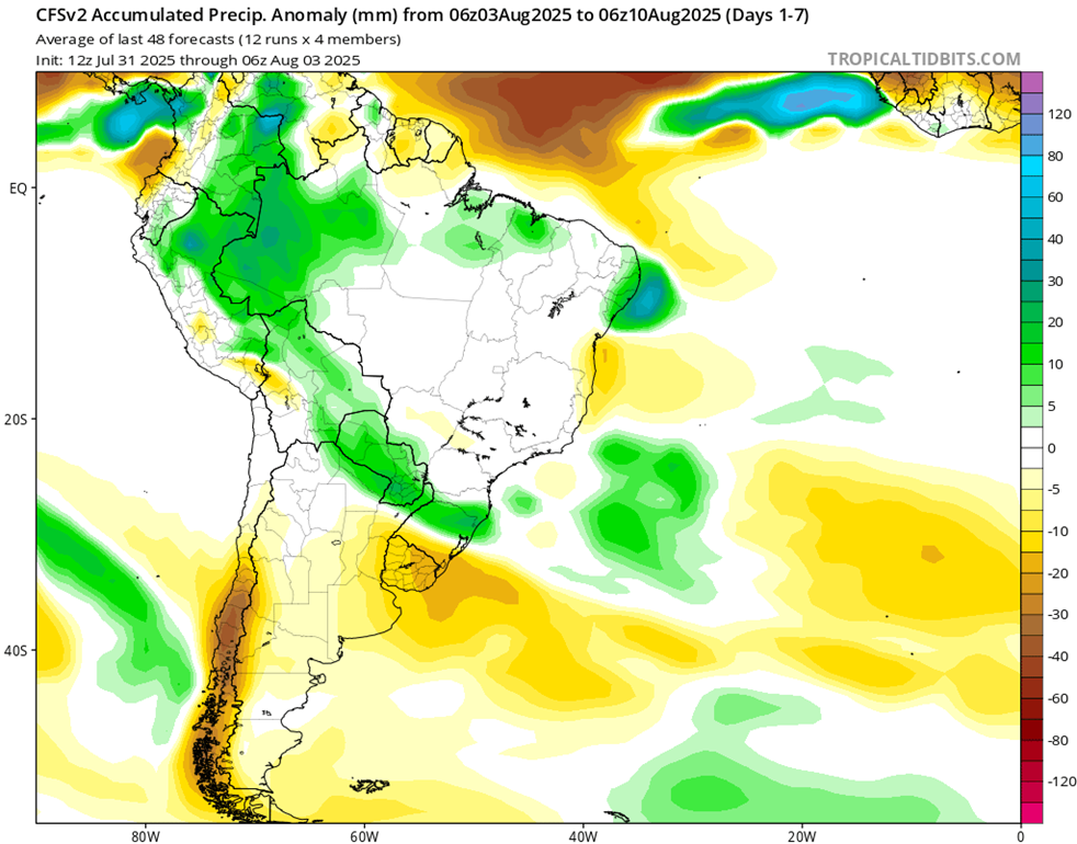 El fenómeno de El Niño-Oscilación del Sur (ENOS) es neutro. El último valor de Niño 3.4 para la semana que finalizó el 8 de junio fue de -0,07 °C. Los valores neutros de ENOS se encuentran entre -0,8 °C y +0,8 °C.