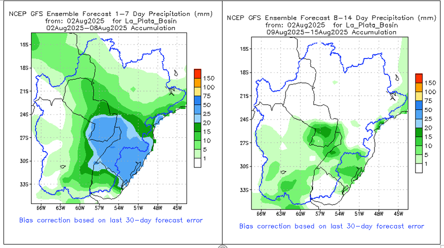 El pronóstico Hidrometeorológico del Centro Climático de referencia indica una tendencia semanal de poca significancia hidrológica en la cuenca de interés para la CHY con dispersión geográfica según sea la fuente consultada. (Ver gráfico Nro. 1).