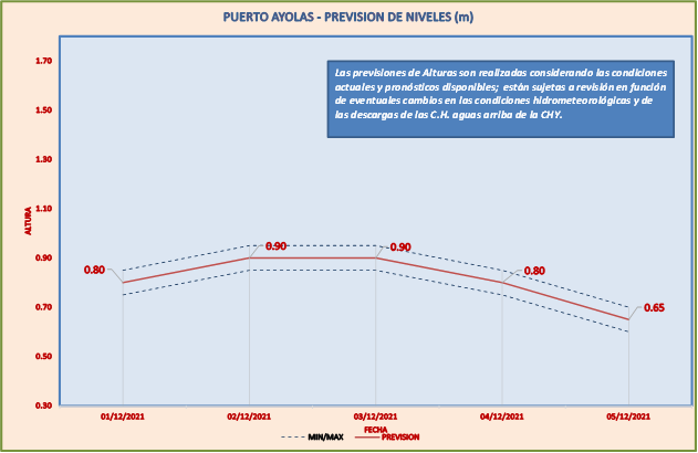 Las previsiones de Alturas son realizadas considerando las condiciones actuales y pronósticos disponibles y están sujetas a revisión en función de eventuales cambios en las condiciones hidrometeorológicas y de las descargas de las C.H. aguas arriba de la CHY.
