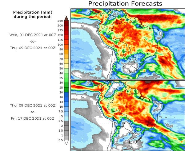 El pronóstico Hidrometeorológico del Centro Climático de referencia indica una tendencia semanal de poca significancia hidrológica en la cuenca de interés para la CHY con dispersión geográfica según sea la fuente consultada. (Ver gráfico Nro. 1).