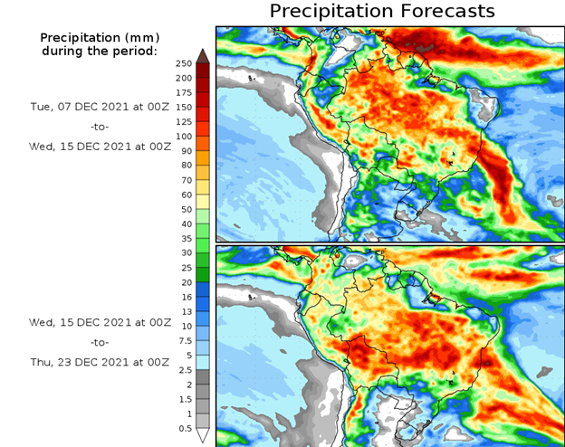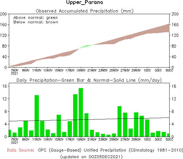El pronóstico Hidrometeorológico del Centro Climático de referencia indica una tendencia semanal de poca significancia hidrológica en la cuenca de interés para la CHY con dispersión geográfica según sea la fuente consultada. (Ver gráfico Nro. 1).