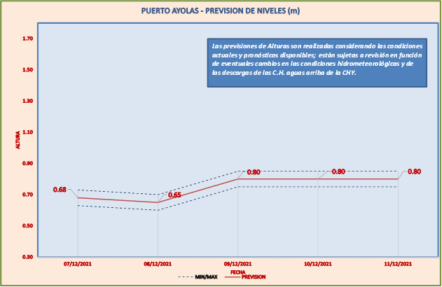 Las previsiones de Alturas son realizadas considerando las condiciones actuales y pronósticos disponibles y están sujetas a revisión en función de eventuales cambios en las condiciones hidrometeorológicas y de las descargas de las C.H. aguas arriba de la CHY.