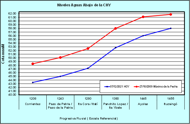REFERENCIA: a modo de información – valores que originan riesgos de inundación en la zona de Ayolas.
