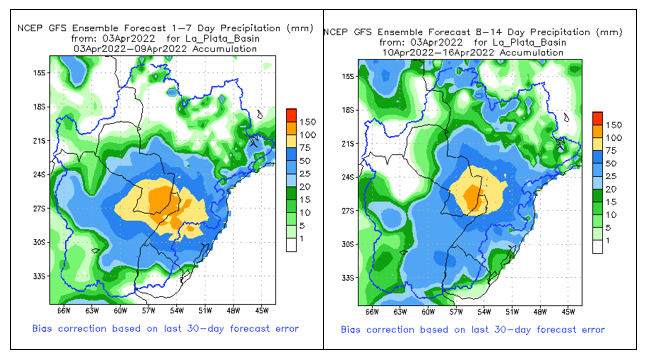 El pronóstico Hidrometeorológico del Centro Climático de referencia indica una tendencia semanal de poca significancia hidrológica en la cuenca de interés para la CHY con dispersión geográfica según sea la fuente consultada. (Ver gráfico Nro. 1).