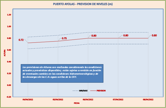 Las previsiones de Alturas son realizadas considerando las condiciones actuales y pronósticos disponibles y están sujetas a revisión en función de eventuales cambios en las condiciones hidrometeorológicas y de las descargas de las C.H. aguas arriba de la CHY.