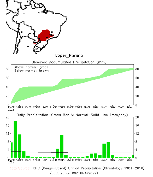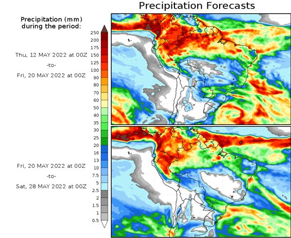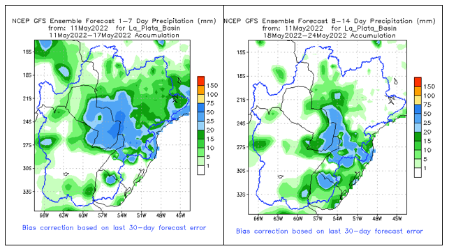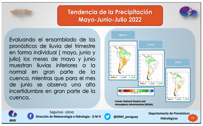 El pronóstico Hidrometeorológico del Centro Climático de referencia indica una tendencia semanal de poca significancia hidrológica en la cuenca de interés para la CHY con dispersión geográfica según sea la fuente consultada. (Ver gráfico Nro. 1).