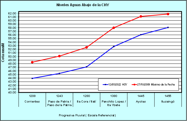 REFERENCIA: a modo de información – valores que originan riesgos de inundación en la zona de Ayolas.
