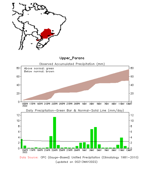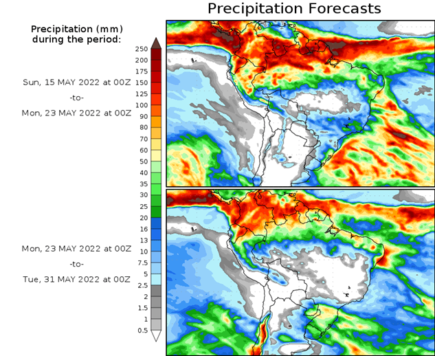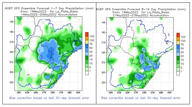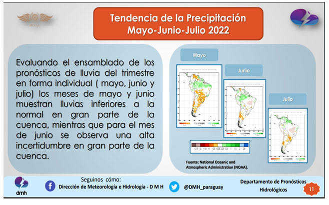 El pronóstico Hidrometeorológico del Centro Climático de referencia indica una tendencia semanal de poca significancia hidrológica en la cuenca de interés para la CHY con dispersión geográfica según sea la fuente consultada. (Ver gráfico Nro. 1).