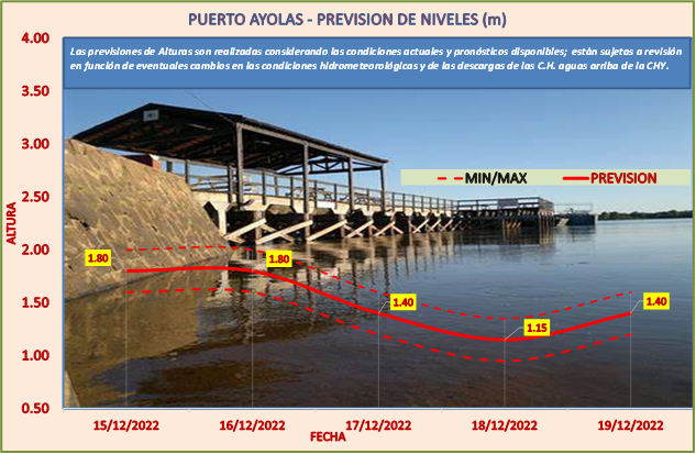 Las previsiones de Alturas son realizadas considerando las condiciones actuales y pronósticos disponibles y están sujetas a revisión en función de eventuales cambios en las condiciones hidrometeorológicas y de las descargas de las C.H. aguas arriba de la CHY.