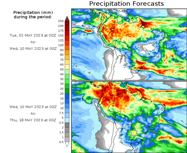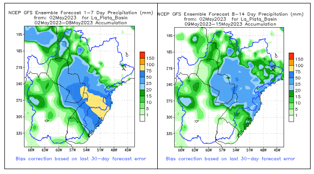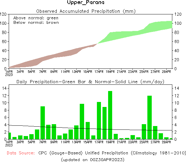 El pronóstico Hidrometeorológico del Centro Climático de referencia indica una tendencia semanal de leve significancia hidrológica en la cuenca de interés para la CHY con dispersión geográfica según sea la fuente consultada. (Ver gráfico Nro. 1).