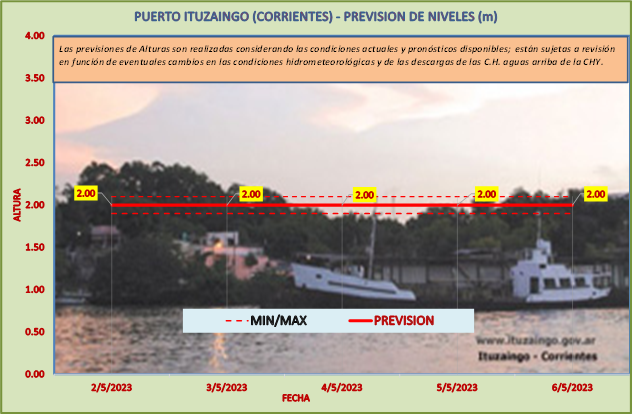Las previsiones de Alturas son realizadas considerando las condiciones actuales y pronósticos disponibles y están sujetas a revisión en función de eventuales cambios en las condiciones hidrometeorológicas y de las descargas de las C.H. aguas arriba de la CHY.