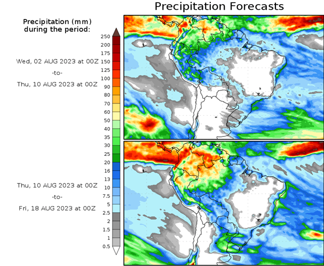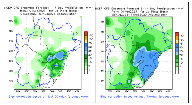 El pronóstico Hidrometeorológico del Centro Climático de referencia indica una tendencia semanal de poca significancia hidrológica en la cuenca de interés para la CHY con dispersión geográfica según sea la fuente consultada. (Ver gráfico Nro. 1).