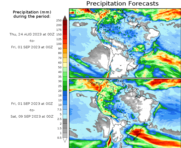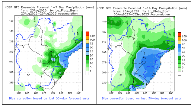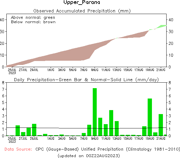 El pronóstico Hidrometeorológico del Centro Climático de referencia indica una tendencia semanal de poca significancia hidrológica en la cuenca de interés para la CHY con dispersión geográfica según sea la fuente consultada. (Ver gráfico Nro. 1).