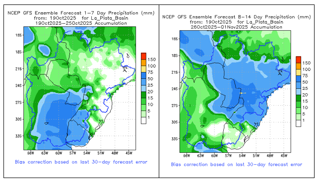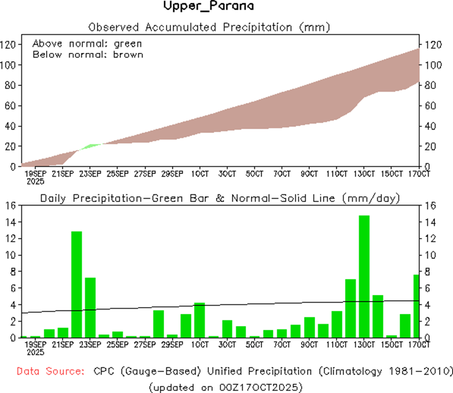 El fenómeno de El Niño-Oscilación del Sur (ENOS) se mantiene neutral. El último valor relativo del índice de temperatura superficial del mar (TSM) Niño3.4 para la semana que finalizó el 28 de septiembre de 2025 es de -0,80 °C. Los valores entre -0,8 °C y +0,8 °C se consideran neutrales respecto al ENOS, mientras que los valores sostenidos por debajo de -0,8 °C (durante al menos tres meses) se consideran indicativos de La Niña.