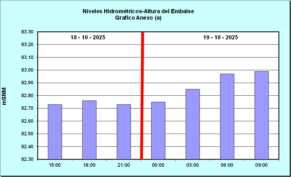 Nivel de Ayer (06:00 hs) = 82.73 mSNM Nivel de Hoy (06:00 hs) = 82.97 mSNM