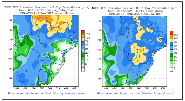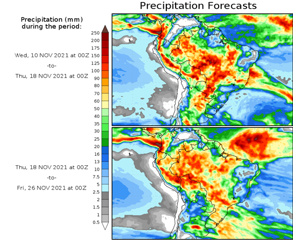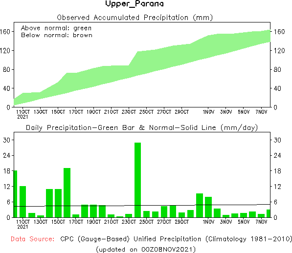 El pronóstico Hidrometeorológico del Centro Climático de referencia indica una tendencia semanal de poca significancia hidrológica en la cuenca de interés para la CHY con dispersión geográfica según sea la fuente consultada. (Ver gráfico Nro. 1).