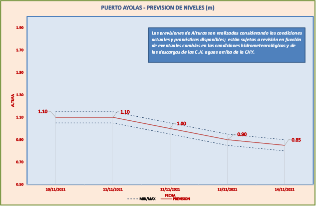 Las previsiones de Alturas son realizadas considerando las condiciones actuales y pronósticos disponibles y están sujetas a revisión en función de eventuales cambios en las condiciones hidrometeorológicas y de las descargas de las C.H. aguas arriba de la CHY.