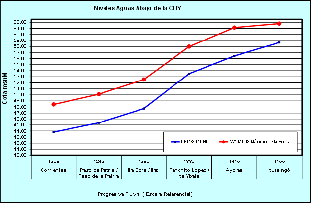 REFERENCIA: a modo de información – valores que originan riesgos de inundación en la zona de Ayolas.