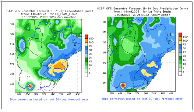 El pronóstico Hidrometeorológico del Centro Climático de referencia indica una tendencia semanal de significancia hidrológica en la cuenca de interés para la CHY con dispersión geográfica según sea la fuente consultada. (Ver gráfico Nro. 1).