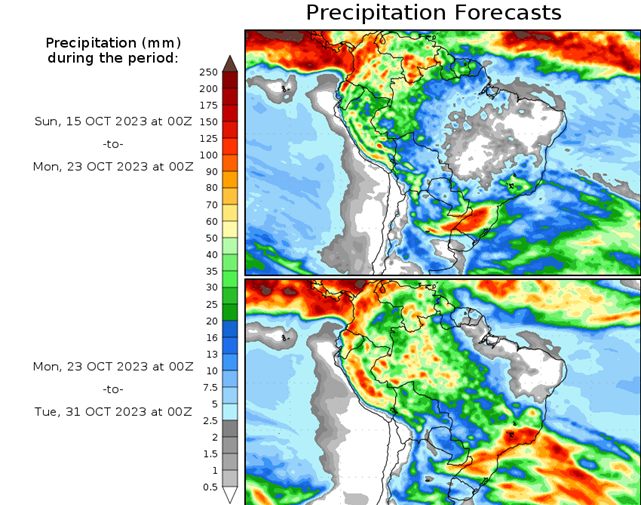 Los indicadores oceánicos muestran firmemente un estado de El Niño. Las temperaturas de la superficie del mar (TSM) del Pacífico central y oriental siguen superando los umbrales de El Niño. Los modelos indican que es probable que se produzca un mayor calentamiento del Pacífico central al oriental.