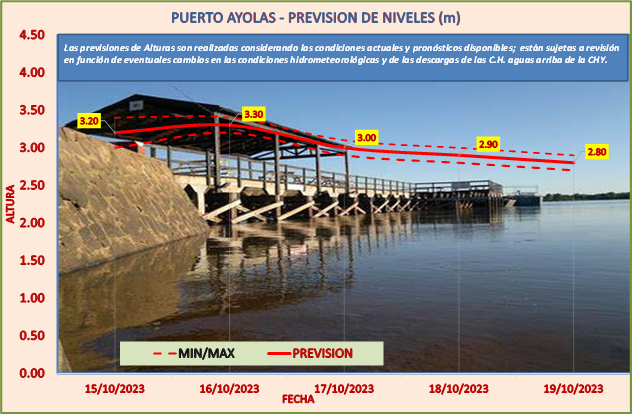 Las previsiones de Alturas son realizadas considerando las condiciones actuales y pronósticos disponibles y están sujetas a revisión en función de eventuales cambios en las condiciones hidrometeorológicas y de las descargas de las C.H. aguas arriba de la CHY.