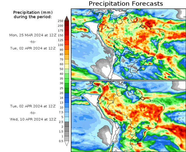El pronóstico Hidrometeorológico del Centro Climático de referencia indica una tendencia semanal de poca significancia hidrológica en la cuenca de interés para la CHY con dispersión geográfica según sea la fuente consultada. (Ver gráfico Nro. 1).