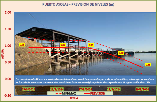 Las previsiones de Alturas son realizadas considerando las condiciones actuales y pronósticos disponibles y están sujetas a revisión en función de eventuales cambios en las condiciones hidrometeorológicas y de las descargas de las C.H. aguas arriba de la CHY.