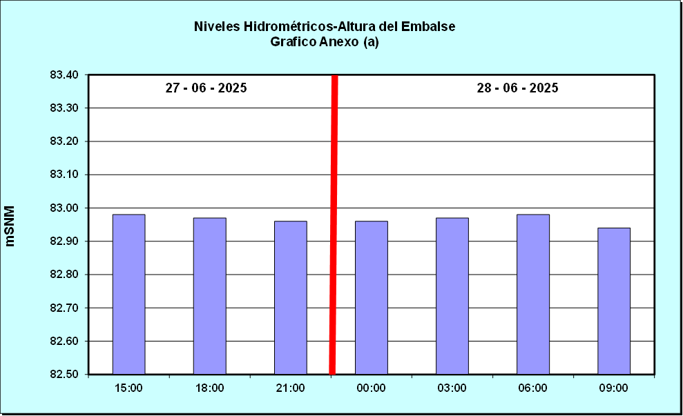 Nivel de Ayer (06:00 hs) = 83.01 mSNM Nivel de Hoy (06:00 hs) = 82.98 mSNM