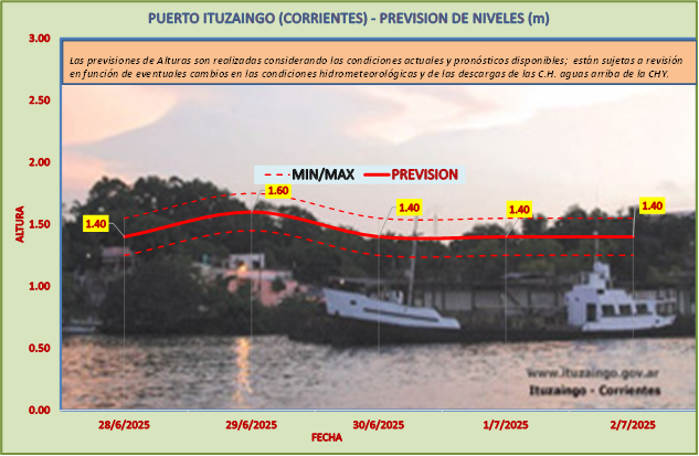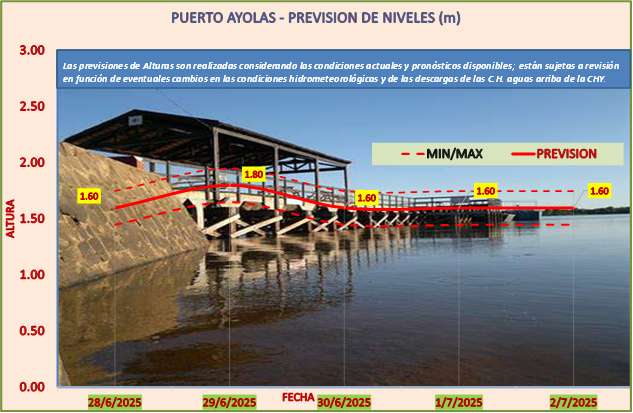 Las previsiones de Alturas son realizadas considerando las condiciones actuales y pronósticos disponibles y están sujetas a revisión en función de eventuales cambios en las condiciones hidrometeorológicas y de las descargas de las C.H. aguas arriba de la CHY.