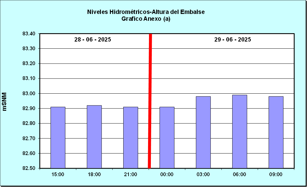 Nivel de Ayer (06:00 hs) = 82.98 mSNM Nivel de Hoy (06:00 hs) = 82.99 mSNM