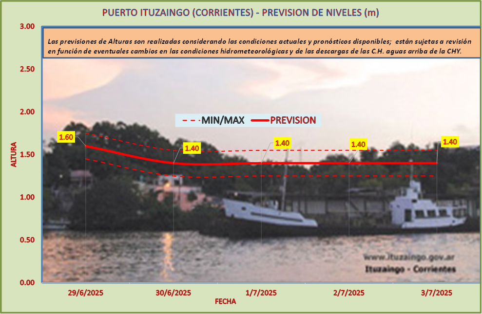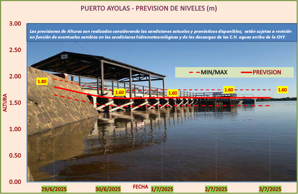 Las previsiones de Alturas son realizadas considerando las condiciones actuales y pronósticos disponibles y están sujetas a revisión en función de eventuales cambios en las condiciones hidrometeorológicas y de las descargas de las C.H. aguas arriba de la CHY.