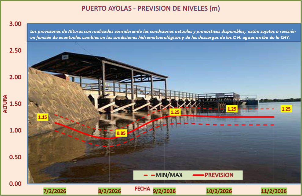 Las previsiones de Alturas son realizadas considerando las condiciones actuales y pronósticos disponibles y están sujetas a revisión en función de eventuales cambios en las condiciones hidrometeorológicas y de las descargas de las C.H. aguas arriba de la CHY.