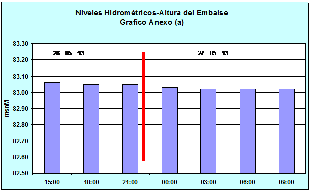 Nivel Día 26-05-13 03:00 hs, 83.07 msnM Nivel Día 27-05-13 03:00 hs, 83.02 msnM
