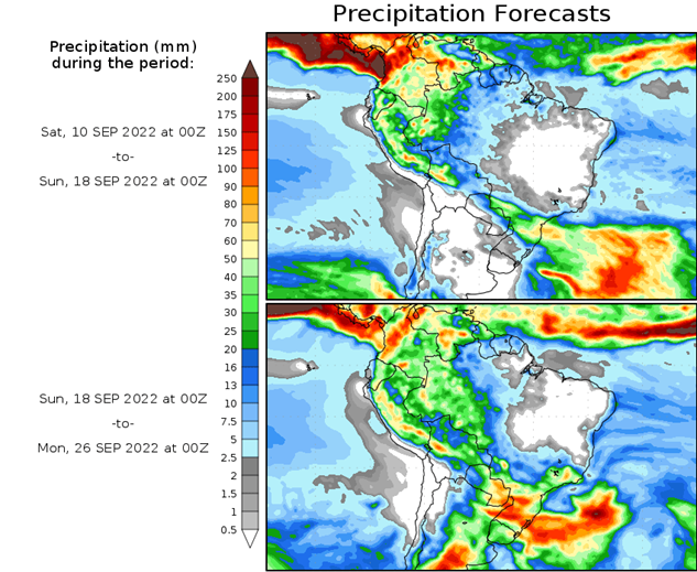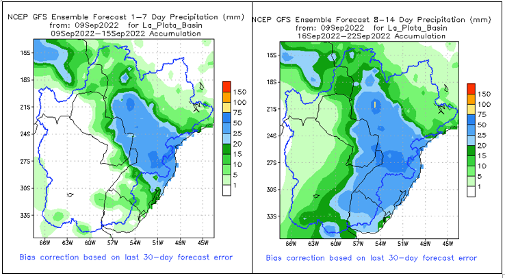 El pronóstico Hidrometeorológico del Centro Climático de referencia indica una tendencia semanal de poca significancia hidrológica en la cuenca de interés para la CHY con dispersión geográfica según sea la fuente consultada. (Ver gráfico Nro. 1).