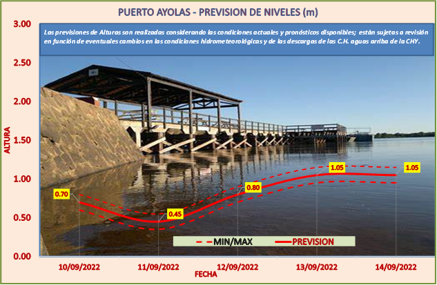 Las previsiones de Alturas son realizadas considerando las condiciones actuales y pronósticos disponibles y están sujetas a revisión en función de eventuales cambios en las condiciones hidrometeorológicas y de las descargas de las C.H. aguas arriba de la CHY.