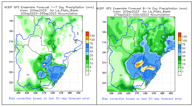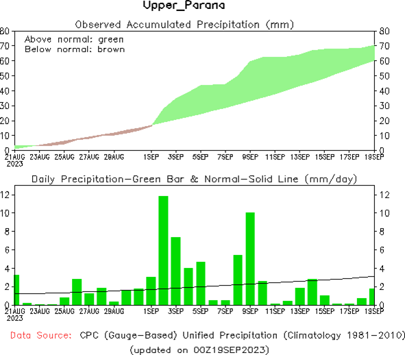 El pronóstico Hidrometeorológico del Centro Climático de referencia indica una tendencia semanal de leve significancia hidrológica en la cuenca de interés para la CHY con dispersión geográfica según sea la fuente consultada. (Ver gráfico Nro. 1).