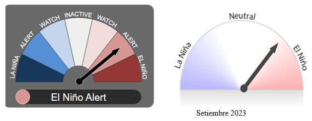 La Perspectiva ENSO está en Alerta El Niño. Cuando los criterios de Alerta de El Niño se han cumplido en el pasado, un evento de El Niño se ha desarrollado alrededor del 70% del tiempo.