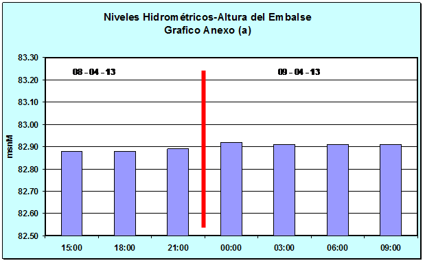 Nivel Día 08-04-13 03:00 hs, 82.89 msnM Nivel Día 09-04-13 03:00 hs, 82.91 msnM