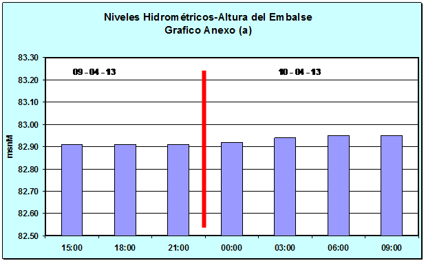 Nivel Día 09-04-13 03:00 hs, 82.91 msnM Nivel Día 10-04-13 03:00 hs, 82.94 msnM