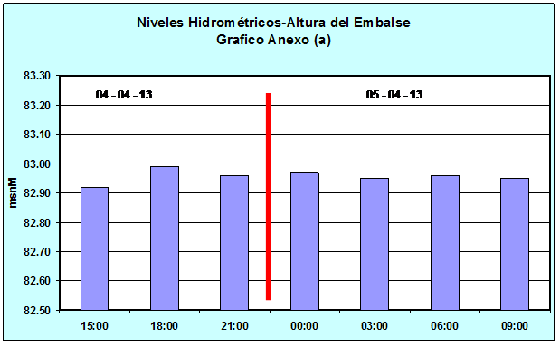 Nivel Día 04-04-13 03:00 hs, 82.97 msnM Nivel Día 05-04-13 03:00 hs, 82.95 msnM