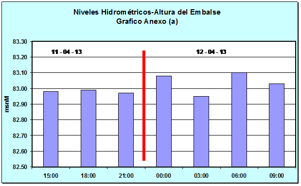 Nivel Día 11-04-13 03:00 hs, 82.99 msnM Nivel Día 12-04-13 03:00 hs, 82.95 msnM