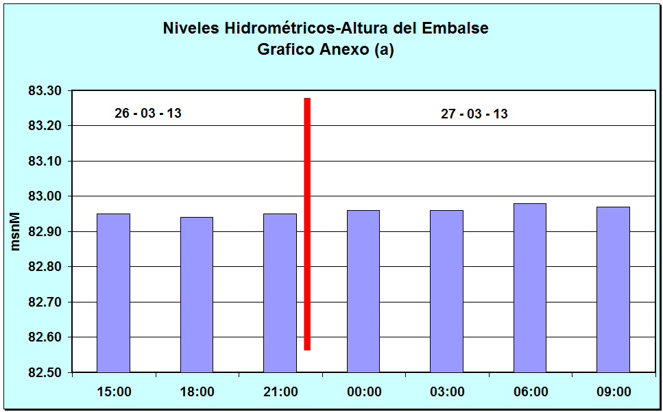 Nivel Día 26-03-13 03:00 hs, 82.98 msnM Nivel Día 27-03-13 03:00 hs, 82.96 msnM