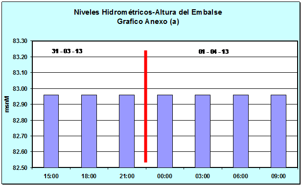 Nivel Día 31-03-13 03:00 hs, 82.98 msnM Nivel Día 01-04-13 03:00 hs, 82.96 msnM