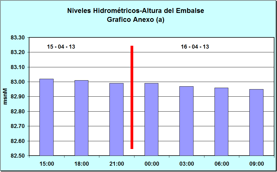 Nivel Día 15-04-13 03:00 hs, 83.08 msnM Nivel Día 16-04-13 03:00 hs, 82.97 msnM