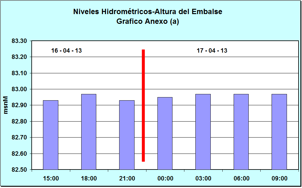Nivel Día 16-04-13 03:00 hs, 82.97 msnM Nivel Día 17-04-13 03:00 hs, 82.97 msnM