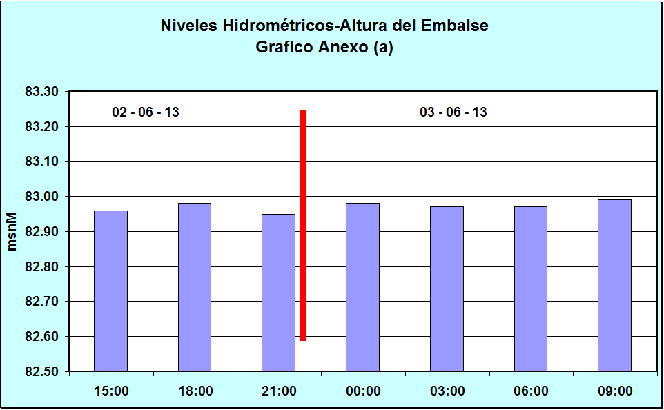 Nivel Día 02-06-13 03:00 hs, 82.99 msnM Nivel Día 03-06-13 03:00 hs, 82.97 msnM